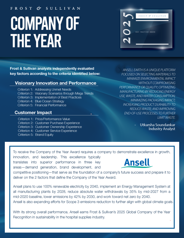 Ansell Receives Frost & Sullivan’s 2025 Global Sustainable Hospital Supplies Company of the Year Award