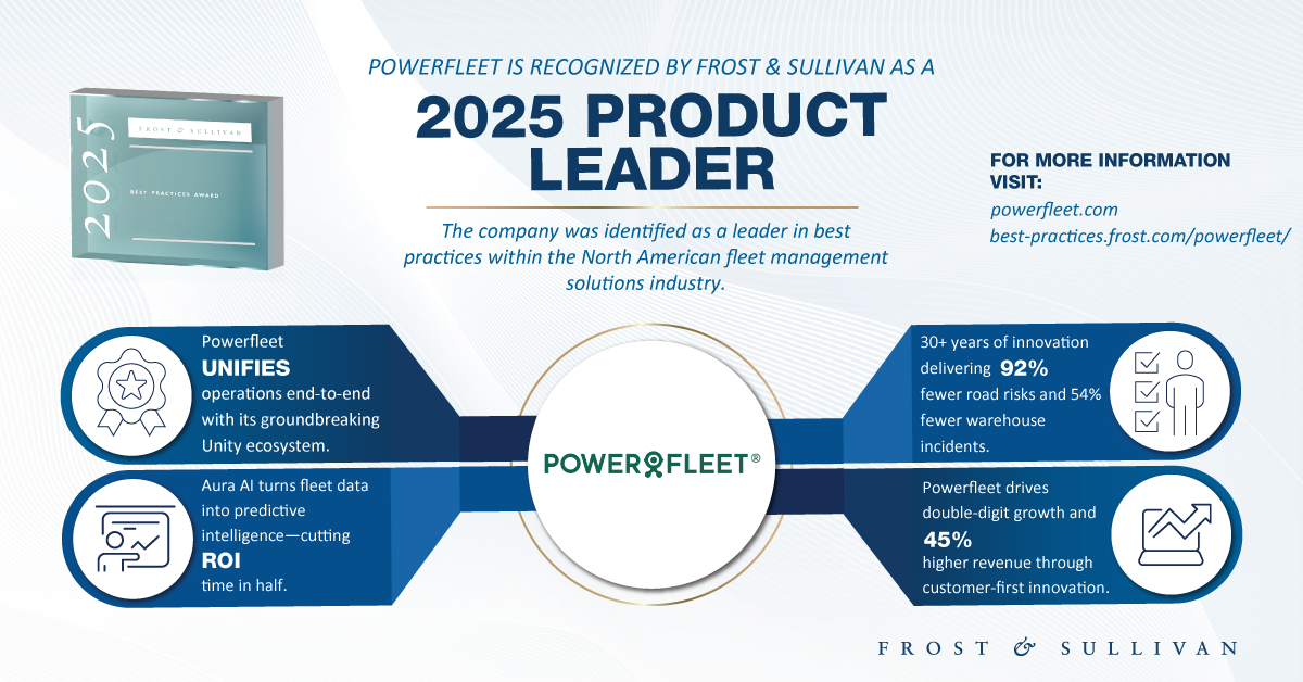 Frost & Sullivan applies a rigorous analytical process to evaluate multiple nominees for each recognition category before determining the final recognition recipient. The process involves a detailed evaluation of best practices criteria across two dimensions for each nominated company. Powerfleet excels in many of the criteria in the fleet management solutions space.